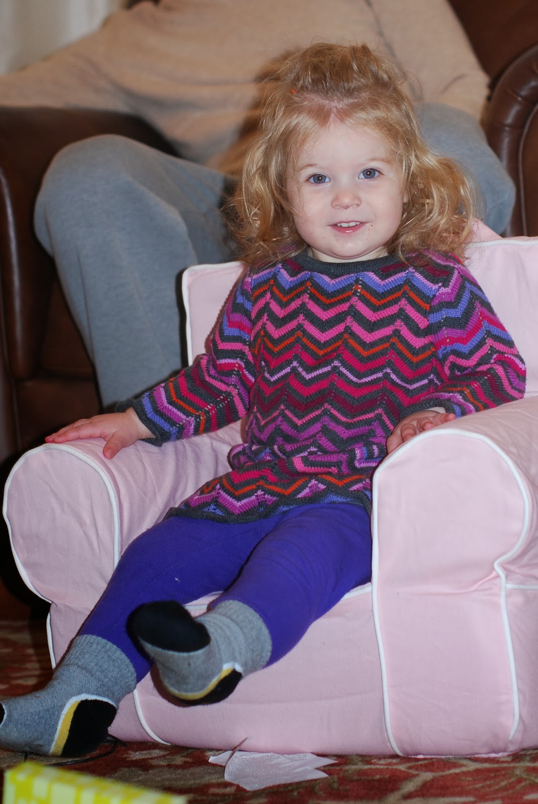 One week and one snowstorm later, Grandma Jane and Grandpa Alan arrived. Henry got a scooter that he loves but hasn't been able to ride much because we've had so much ice. He also got this super cool kiddie DSLR (just like Mommy's!) that the boys all fight over at the park. Ingrid loves her pink chair because, unlike her brother, she does occasionally sit still. And goldshoes. The girl loves goldshoes.